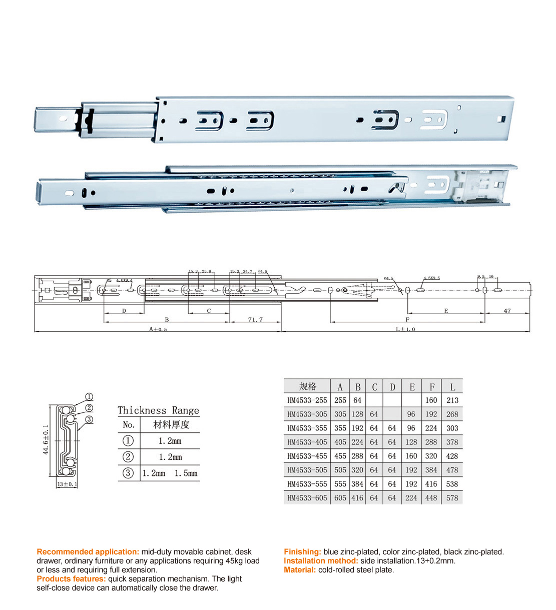 HM4533 SOFT-CLOSING FULL EXTENSION SLIDE