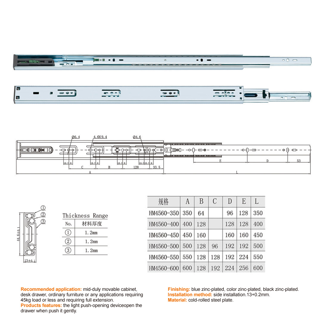 HM4560 SOFT-CLOSING FULL EXTENSION SLIDE