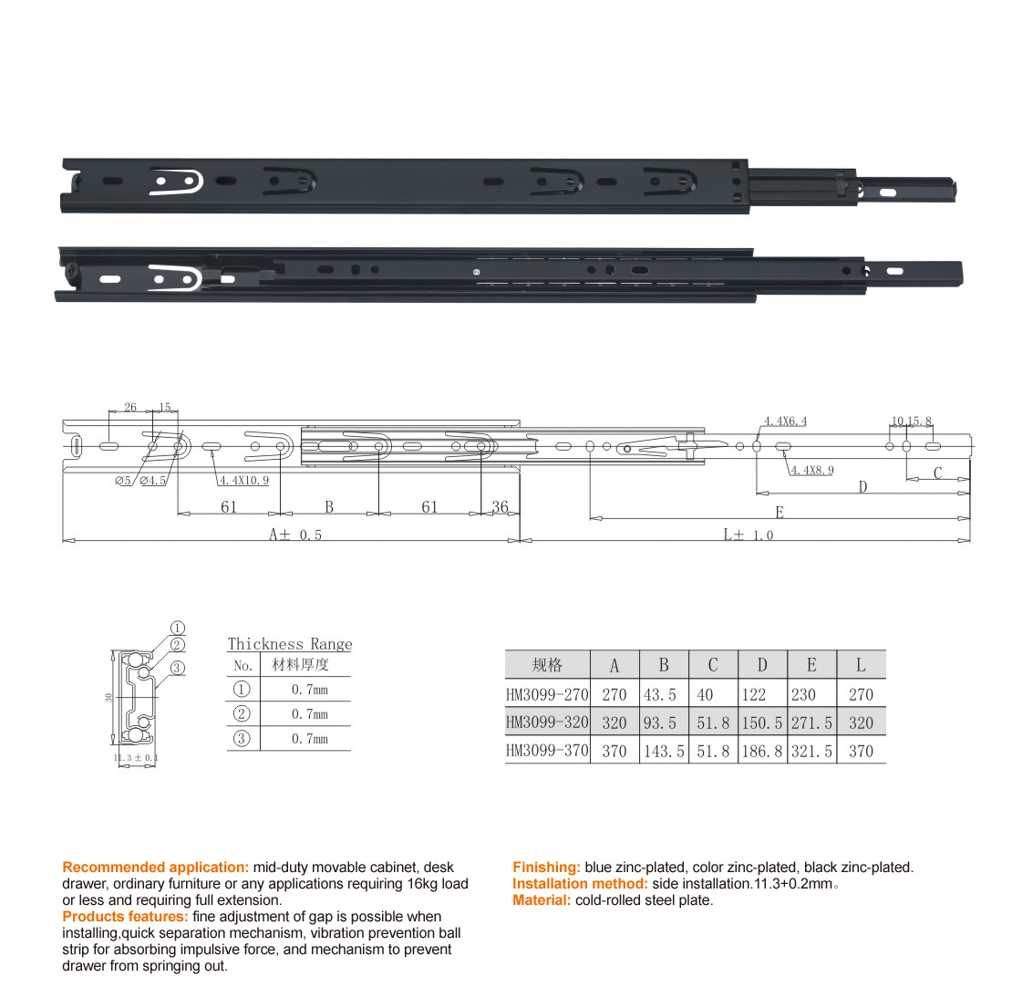 HM3099 FULL EXTENSION BALL BEARING SLIDE