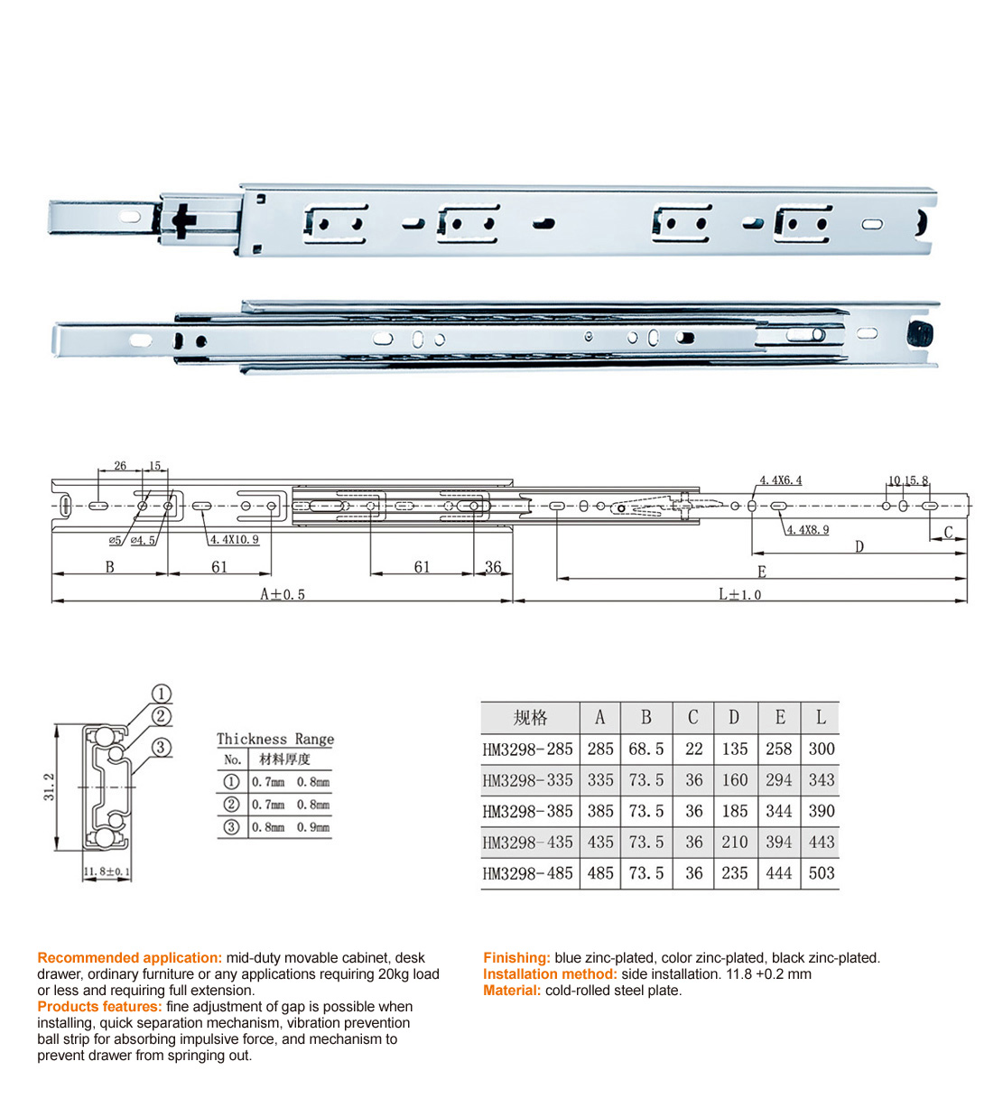 HM3298 FULL EXTENSION BALL BEARING SLIDE