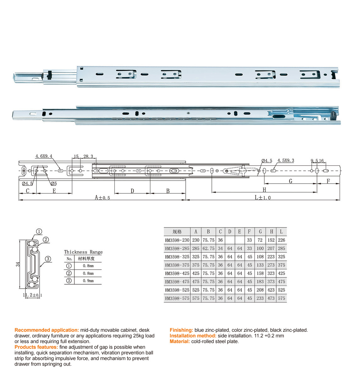 HM3598 FULL EXTENSION BALL BEARING SLIDE