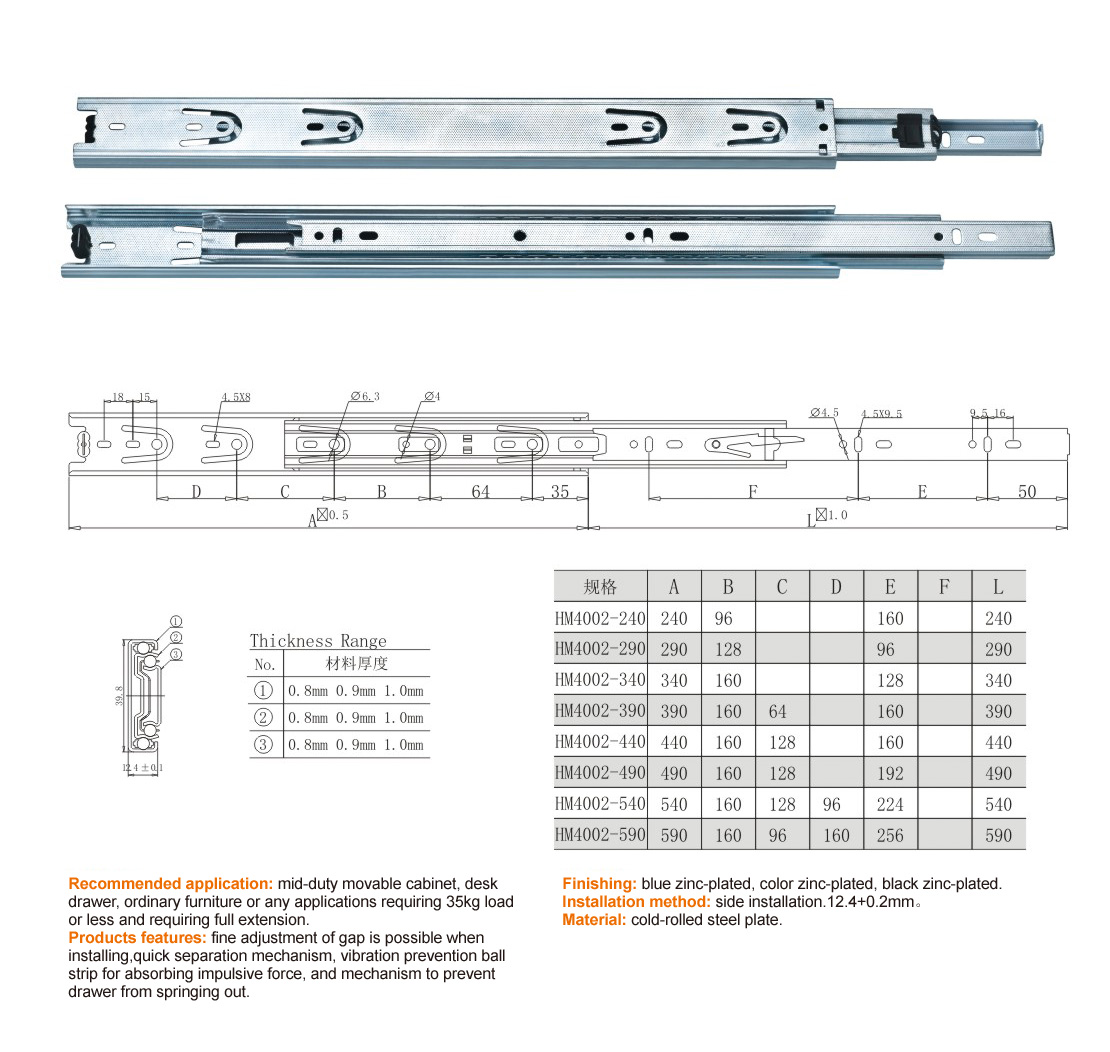 HM4002 FULL EXTENSION BALL BEARING SLIDE