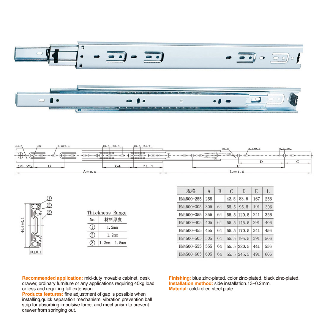 HM4500 FULL EXTENSION BALL BEARING SLIDE