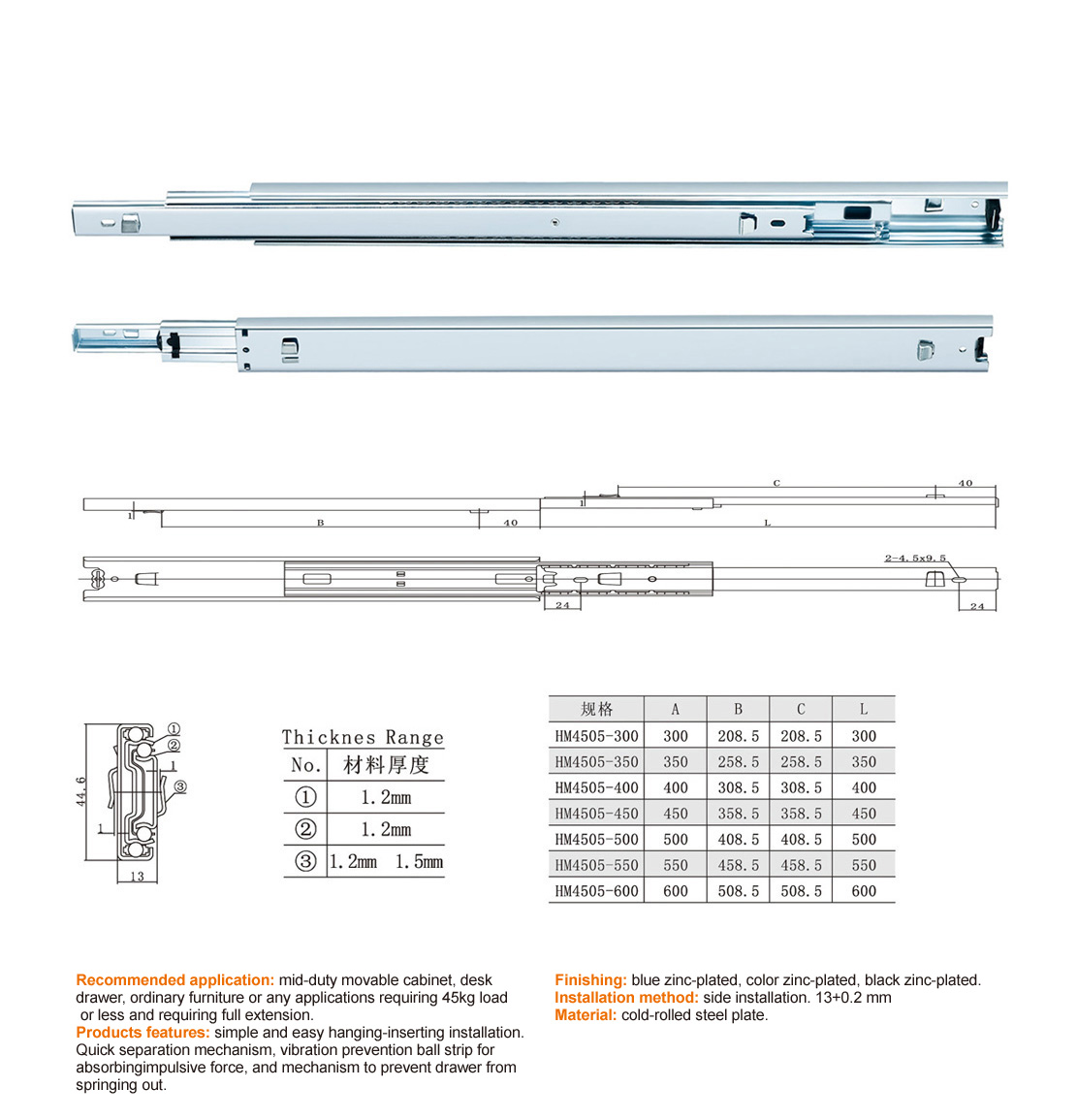 HM4505 FULL EXTENSION BALL BEARING SLIDE