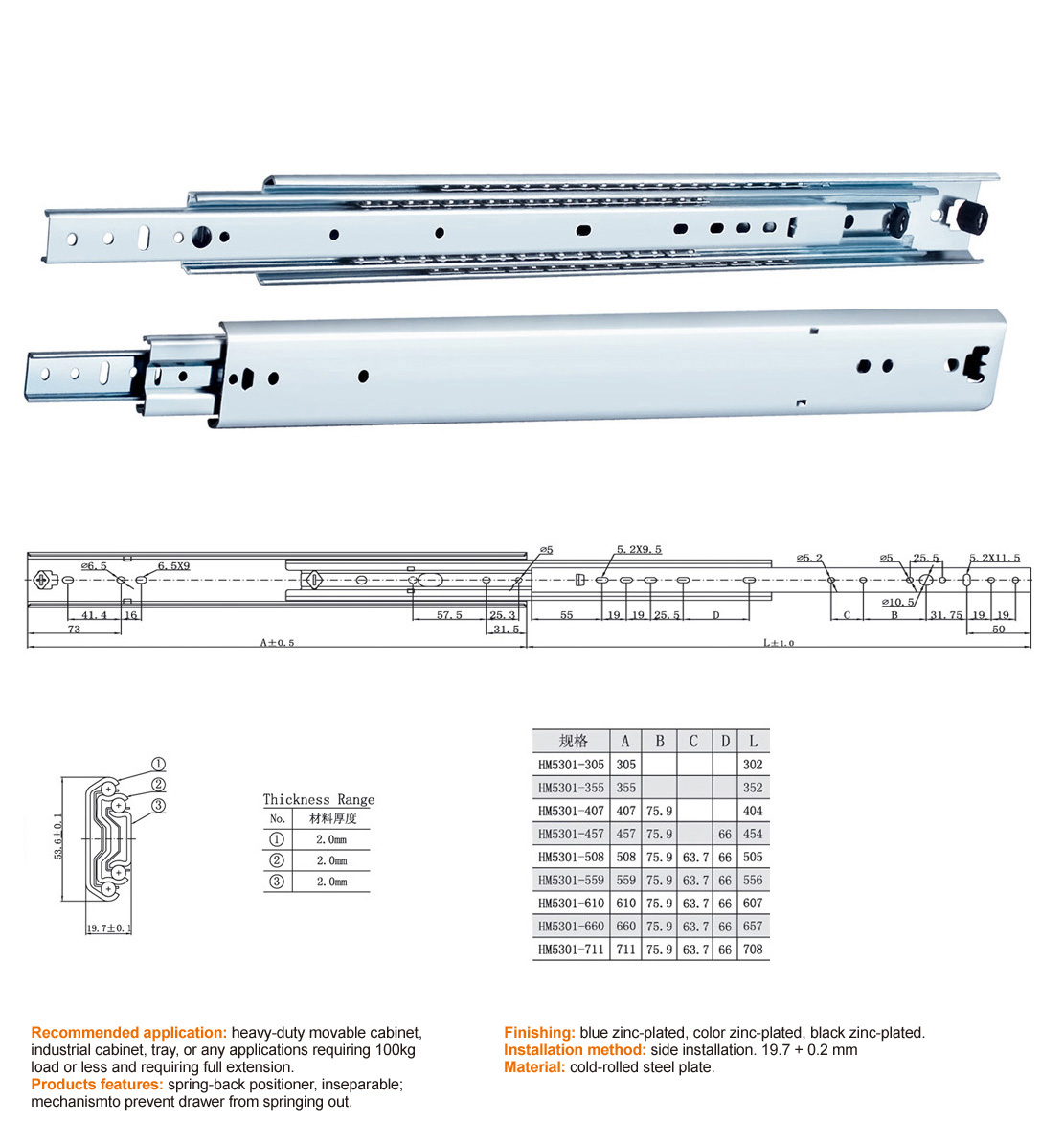 HM5301 FULL EXTENSION BALL BEARING SLIDE