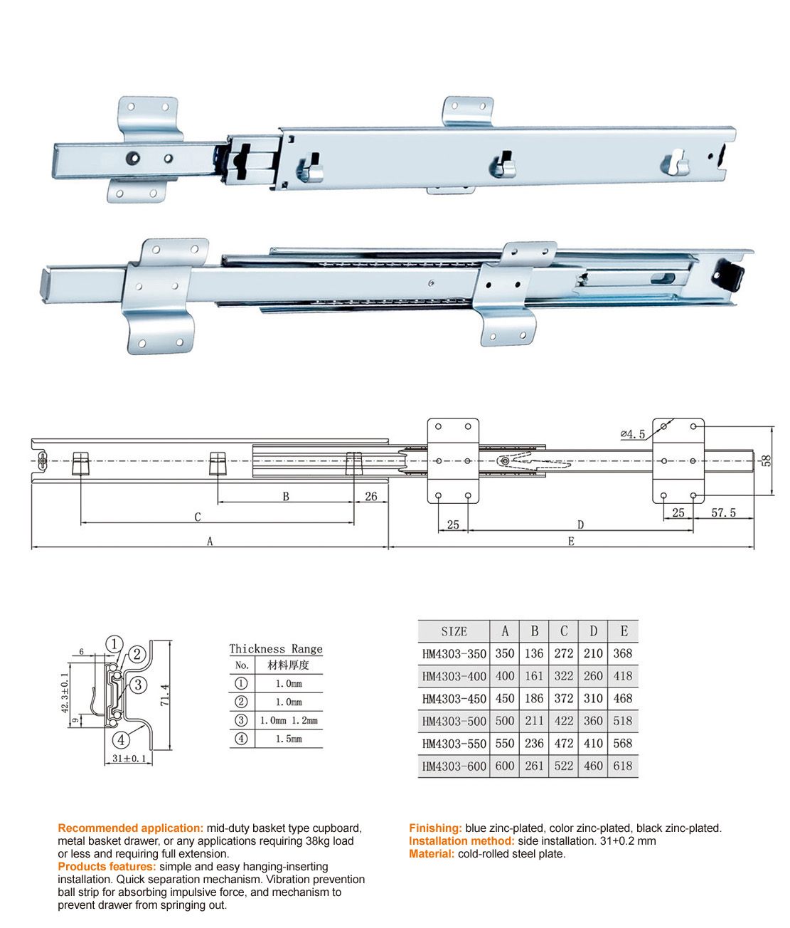 HM4303 HANGING BASKET BALL BEARING SLIDE