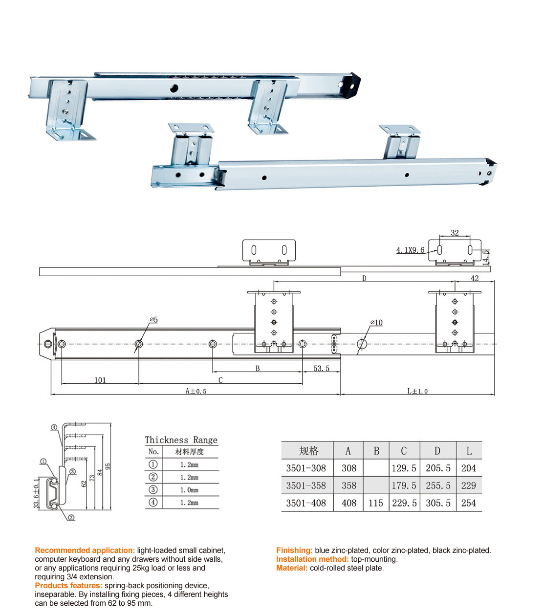 HM3501 35 2-FOLD BALL BEARING SLIDE