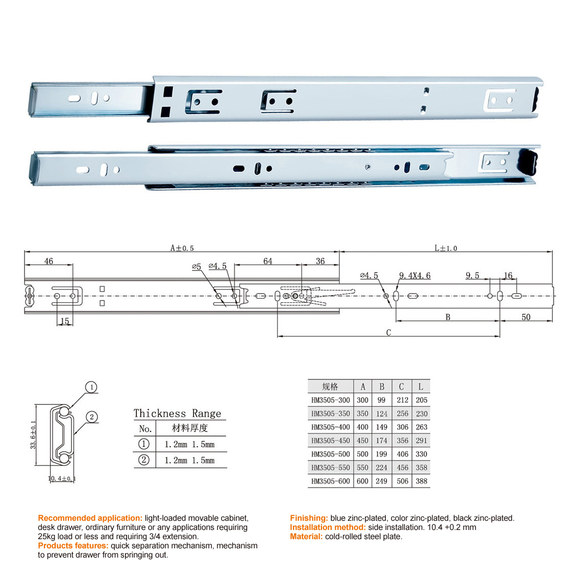 HM3505 35 2-FOLD BALL BEARING SLIDE