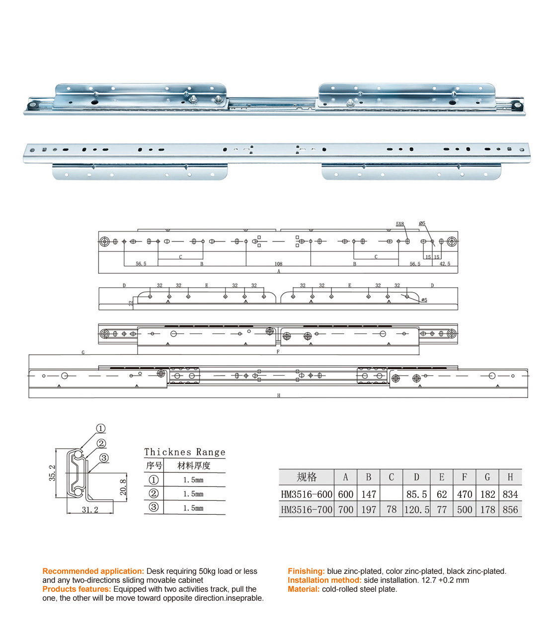 HM3516 35 2-FOLD BALL BEARING SLIDE