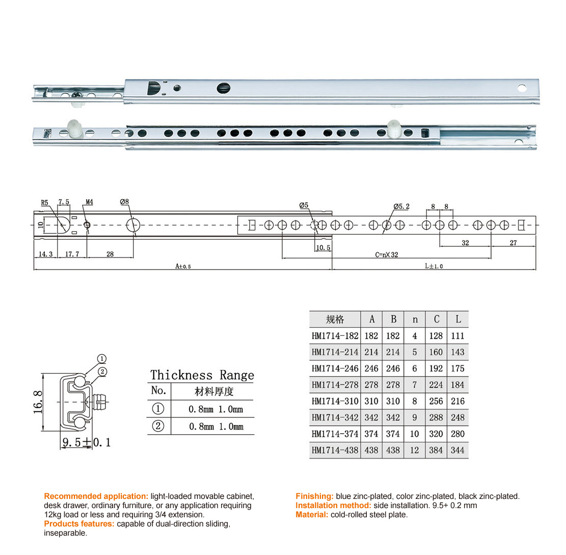 HM1714 17/27 2-FOLD BALL BEARING SLIDE