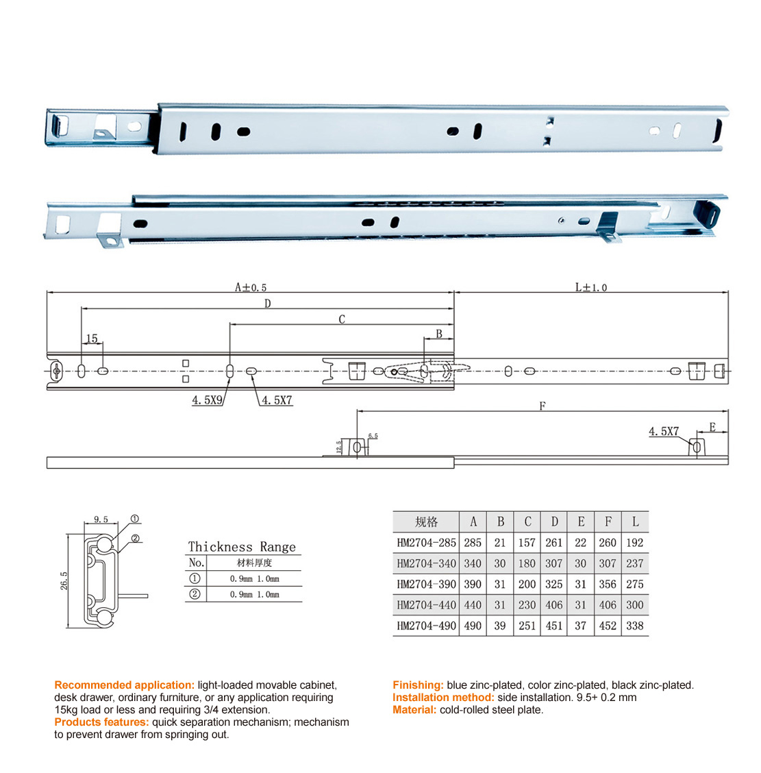 HM2704 17/27 2-FOLD BALL BEARING SLIDE