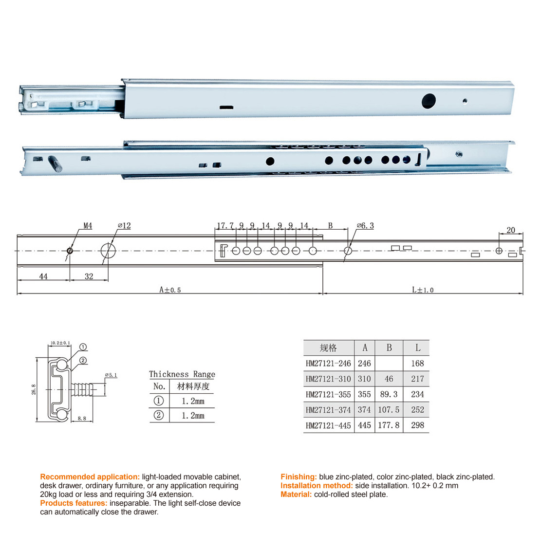 HM27121 17/27 2-FOLD BALL BEARING SLIDE