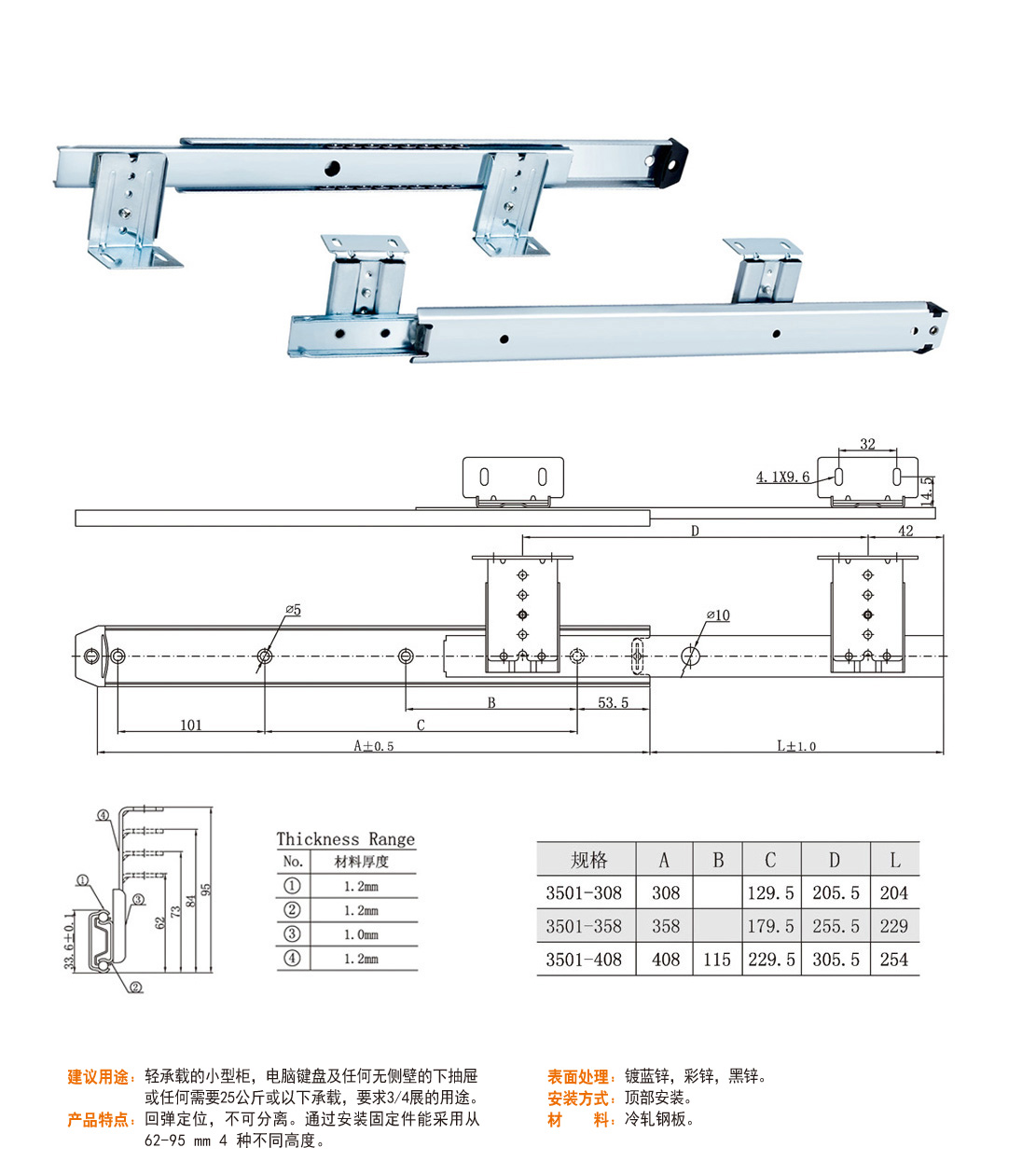 HM3501 35二折滑軌系列