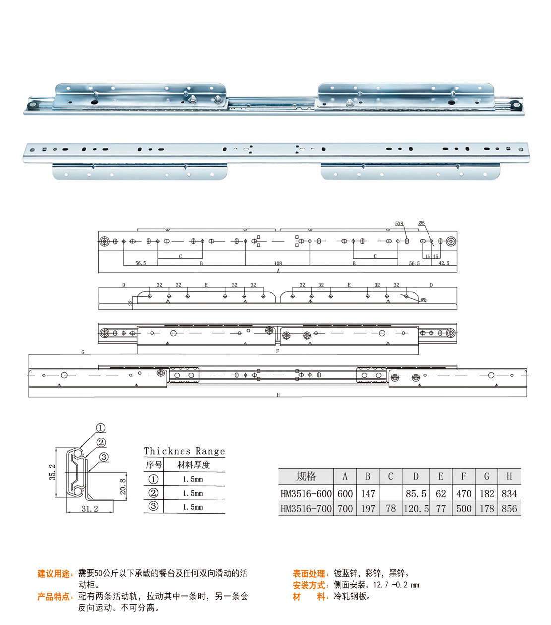 HM3516 35二折滑軌系列