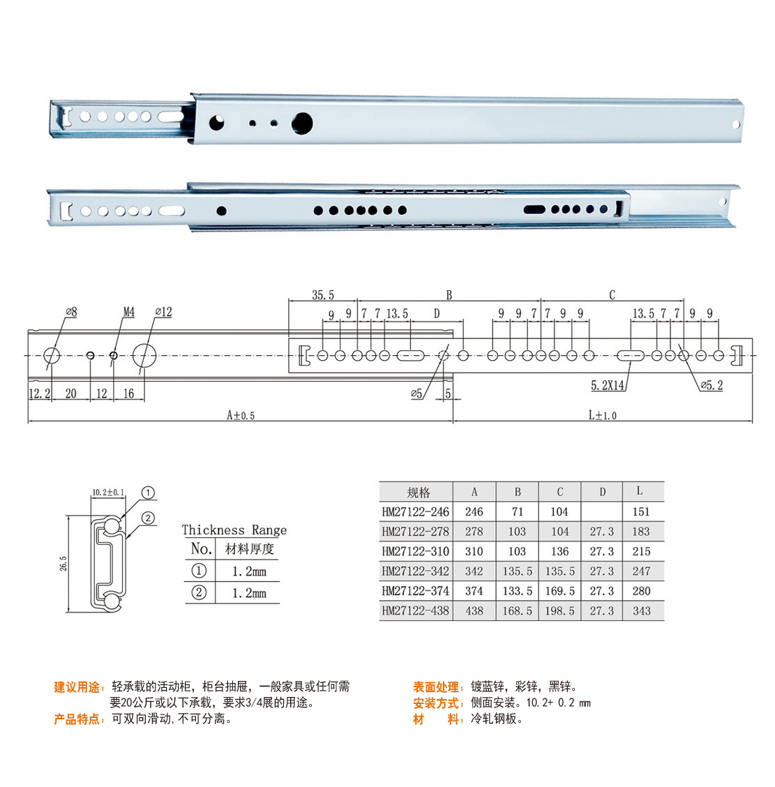 HM27122 17/27二折滑軌系列